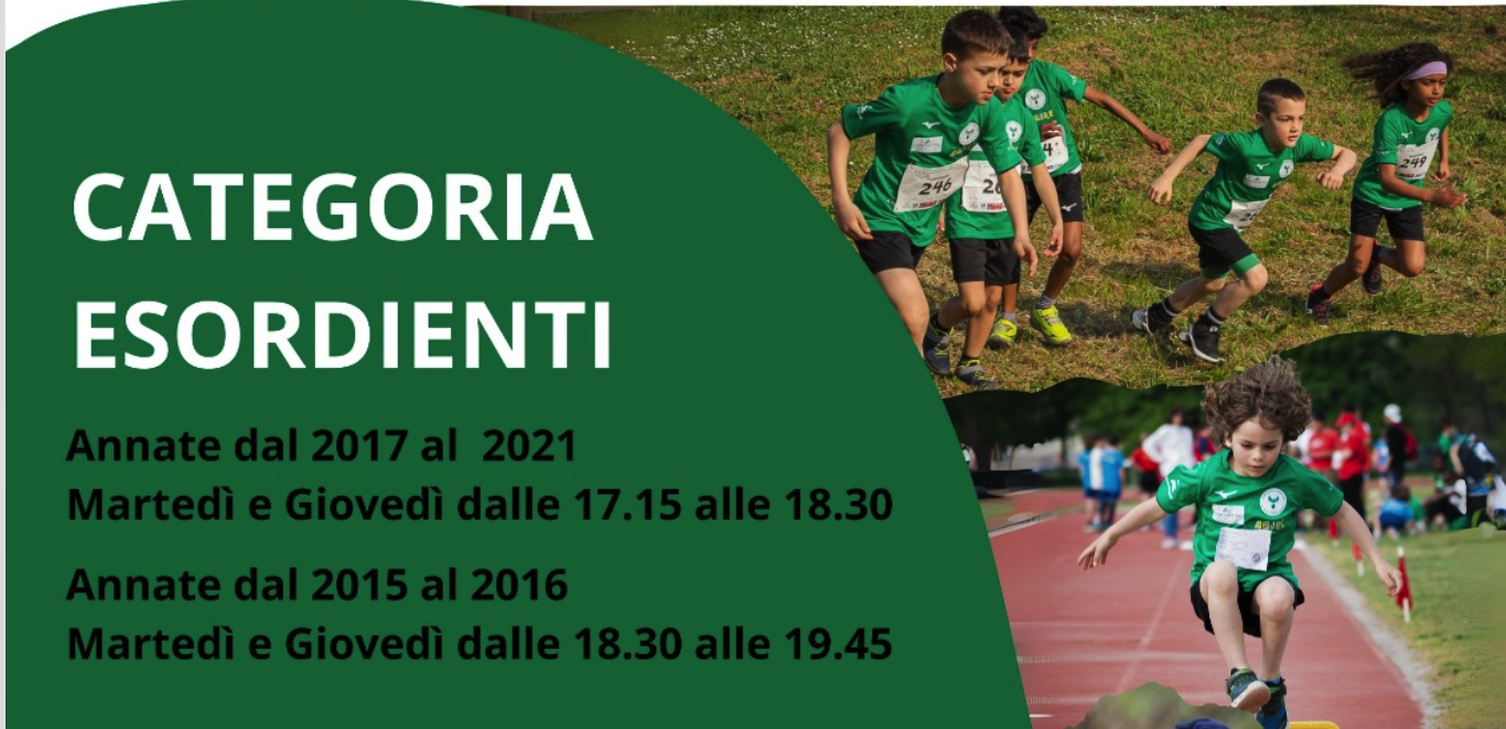 • Esordienti 5–8 (nati 2017–2021): Martedì e Giovedì 17:15–18:30